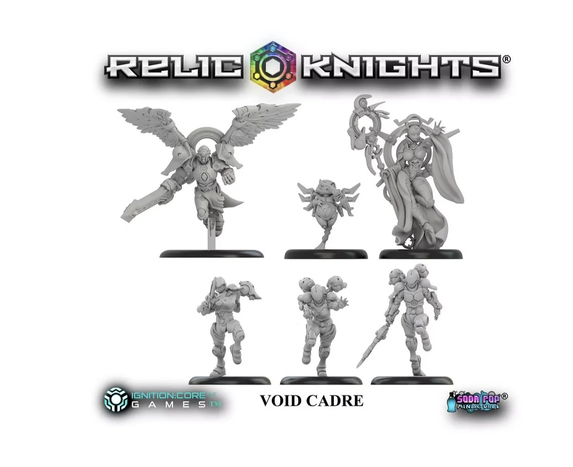The Radiant vs Void Relic Knights Starter Set comes with 12 miniatures, unit profile cards and two Esper decks, providing everything you need to field two 35 point Cadre rosters.